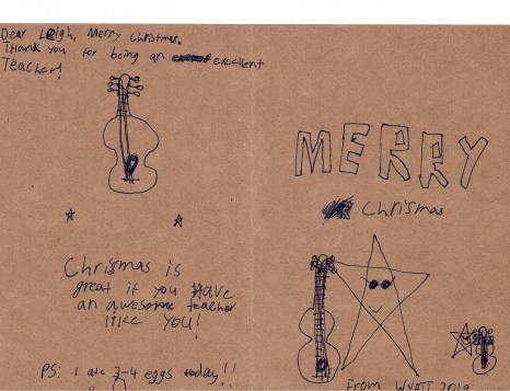 I think Sam is growing up a lot and he is also really enjoying guitar which helps to motivate his practice. I’m glad that he is doing well in lessons too!!